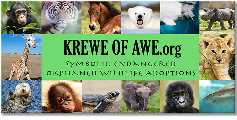 The Krewe of AWE is a non-profit, donations are dispersed to more than a dozen sanctuaries to symbolically adopt orphaned, retired, or threatened wildlife. To date donations have been made to the following sanctuaries: