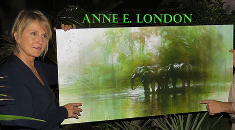 By becoming a sponsor at this level, you will receive an original, commissioned painting from world renowned wildlife conservation fine artist Anne E. London. Anne has traveled the world capturing vivid portraits of wildlife in their natural habitats for over 39 years. Anne E. London's Website